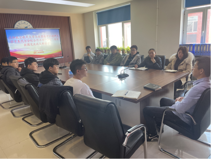 会议由国际工程师学院教学院长丁国辉老师主持,2020级辅导员陈洋、2021级辅导员李丹以及有意向在下学期赴美方院校交流的同学参会。