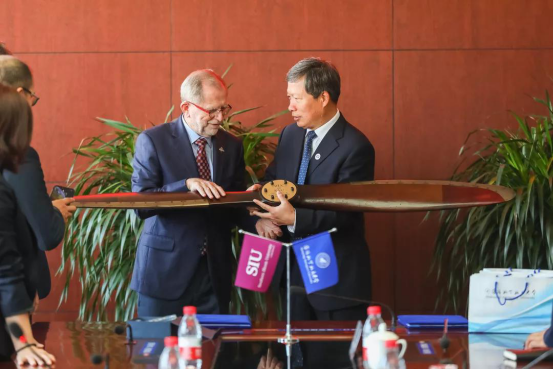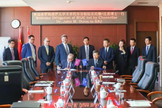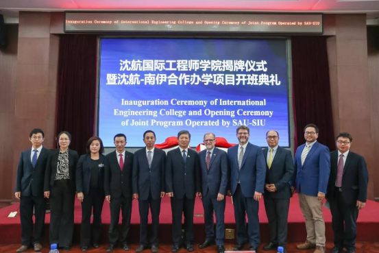 Dr. John M. Dun校长一行参加了今年会jinnianhuicom国际工程师学院揭牌仪式暨沈航—南伊合作办学项目开班典礼。沈航与美国南伊利诺伊卡本代尔分校联合举办的飞行器动力工程专业于2018年获教育部审批,2019年首批招生,目前在校学生68人。项目的开展对沈航高等教育国际化产生了深远的影响,并成为提高沈航教育办学质量和水平的有效途径。