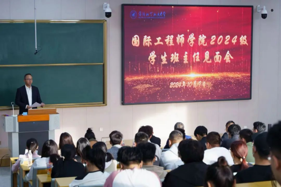 2024年10月9日,国际工程师学院2024级学生班主任见面会在三号教学楼隆重举行。校党委常委、组织部部长兼国际工程师学院院长徐宝贵、国际工程师学院全体教师、2024级学生班主任及助理辅导员、院学生会和院团委学生干部参加了见面会。会议由直属党支部书记兼副院长马宁主持。